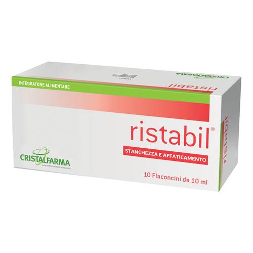 RistabilDescrizione Integratore alimentare a base di pappa reale, eleuterococco, mirtillo nero, rosa canina e vitamine del gruppo B, utile per contrastare la stanchezza e l'affaticamento. Ingredienti Acqua, fruttosio, miele d'acacia, Eleuterococco ( Eleutherococcus senticosus - Rupr. et Maxim. - Maxim) radice estratto secco* 0,4% in eleuterosidi e 5% in saponosidi totali, Pappa reale liofilizzata 3,5% minimo in acido 10- idrossidecenoico (10 HDA), Rosa canina ( Rosa canina L.) frutti estratto secco*, Mirtillo nero ( Vaccinium myrtillus L.) frutti estratto secco* 5% in antocianosidi; acidificante: acido citrico; conservante: sorbato...